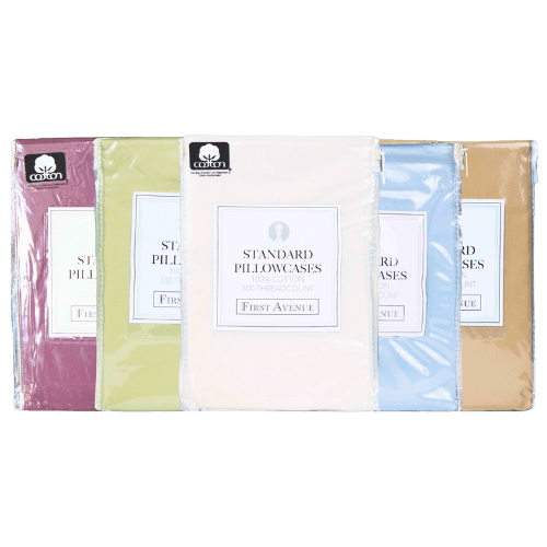 First Avenue Pillowcases Standard 20 x 30″ Assorted Colours 2 pk