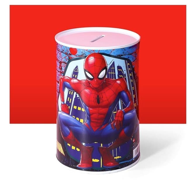 Spiderman Tin Savings Bank Assorted Patterns 6 x 4″