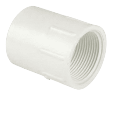 A 3/4″ PVC Female Adaptor is a plumbing fitting designed to connect a 3/4-inch Schedule 40 PVC pipe to a female-threaded fitting. This adaptor features a slip (socket) connection on one end and female threads on the other, allowing for secure and leak-resistant connections in various applications. Constructed from durable PVC material, it offers excellent resistance to corrosion, chemicals, and impact, making it suitable for use in irrigation systems, drainage, and other plumbing projects. The adaptor is easy to install using standard PVC primer and cement, ensuring a tight seal. Its compact size and reliable performance make it an essential component for completing PVC piping installations.