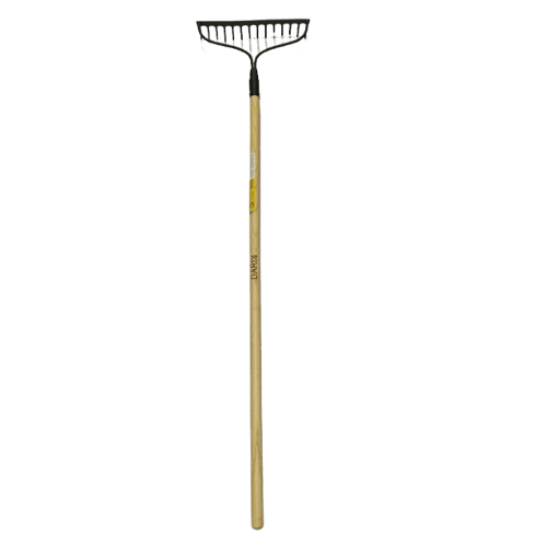 The Darixx 14-Tine Bow Rake is a sturdy and efficient tool designed for leveling soil, spreading mulch, and breaking up tough ground. Its forged steel head with 14 curved tines ensures durability and effective performance in heavy-duty garden tasks. The strong connection between the head and handle provides added strength and control. A long, comfortable handle reduces strain, making it easy to use for extended periods. Ideal for gardeners and landscapers, this bow rake delivers reliable results season after season.