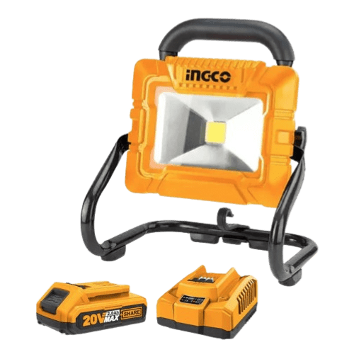 The INGCO HRLF4415 is a versatile 3.6V lithium-ion cordless LED work lamp designed for both professional and personal use. It offers two brightness settings: 900 lumens on high and 500 lumens on low, providing reliable illumination for various tasks. With a 5000mAh rechargeable battery, it delivers up to 2.5 hours of continuous light on high and 4 hours on low. The lamp features a 6-hour charging time and comes with a USB charging cable for convenience. Its compact design and portability make it ideal for use in workshops, camping trips, or emergency situations.